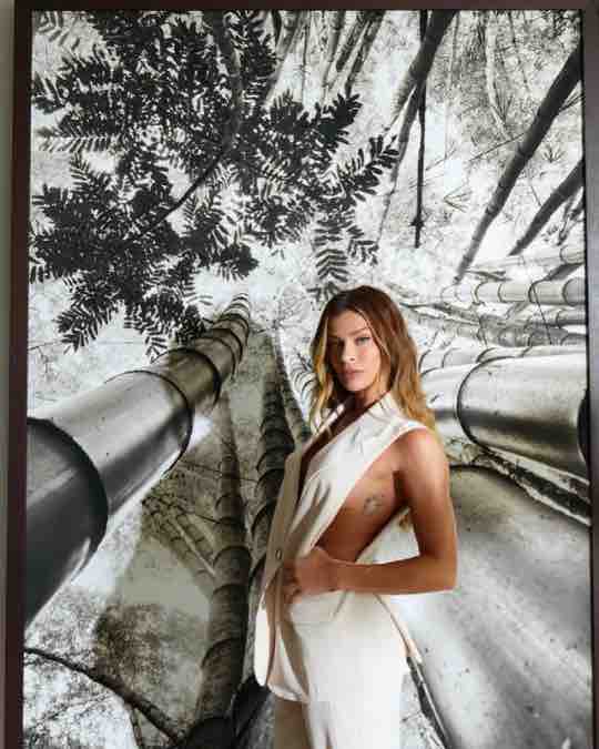 Nas fotos, Grazi aparece se preparando para o ensaio e recebendo o design da pintura. Com o busto coberto, ela se assemelha a alguém usando uma camiseta com o logo da marca e mencionou que o processo levou horas para ser concluído.