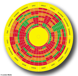 O pesquisador britânico Dr. Derek Stewart realizou um estudo em 20 superfrutos mais populares, ou seja aqueles que possuem mais benefícios para a saúde. Os resultados apontaram que o cassis, diante de seus mais altos níveis de antioxidantes, é o mais nutritivo dentre eles, seguido por mirtilos, framboesas, morangos e romãs, conforme aponta a figura abaixo.