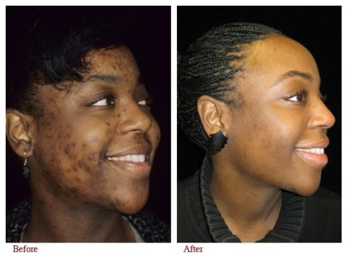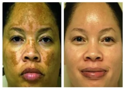 Na dose de 2%, a hidroquinona pode trazer resultados como o abaixo.