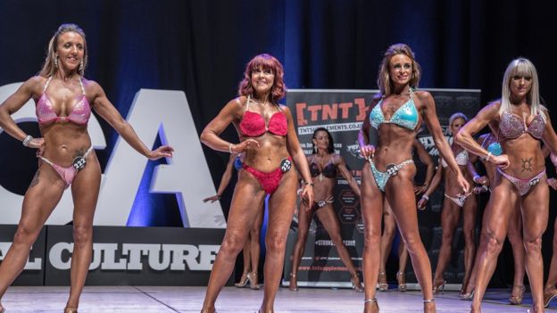 Um regime de treinamento intenso fez seu manequim tamanho 42 se tornar um 36 para competir nagrande prêmio de fisiculturismo Xplosive Ape em Birmingham, na Inglaterra.