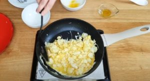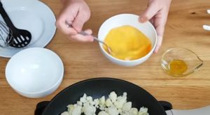 - Derramar os ovos sob a couve-flor e deixar cozinhar até ficar dourada.