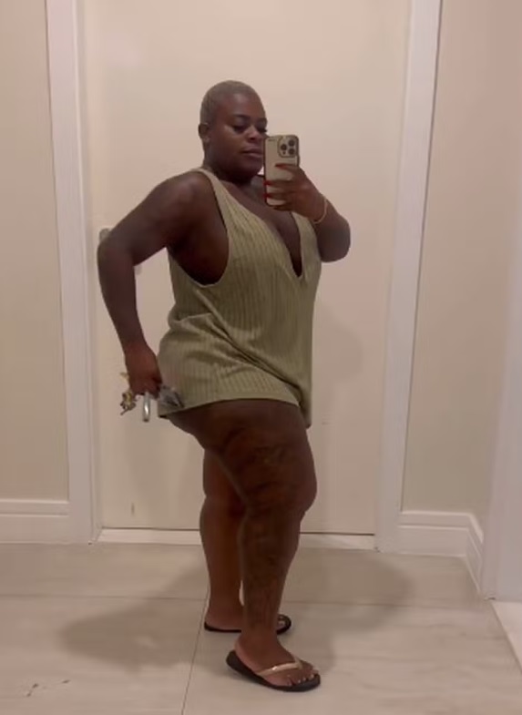 Jojo Todynho, 27 anos, decidiu usar uma roupa que costumava vestir antes de realizar a cirurgia bariátrica, em agosto de 2023. Desde então, a cantora perdeu quase 50 kg.