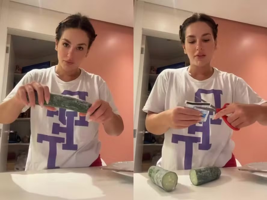 Na segunda-feira (5), Kéfera mostrou que ainda seguia um método bastante polêmico: o de comer pepino com gelatina em pó. A influencer faz isso para inibir a vontade de comer doces.