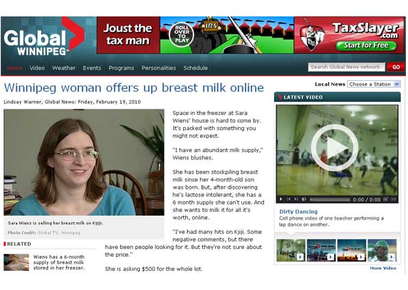 A canadense Sara Wien, por ter um filho com intolerância a lactose, resolveu estocar toda a sua produção de leite em pequenas bolsas. Os lotes acumulavam mais de 6 meses de leite.