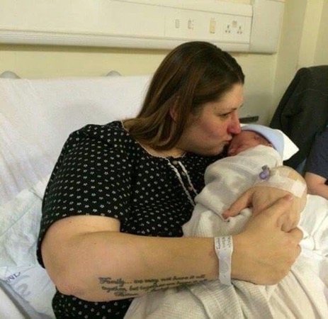 Izzy, que também é mãe de Grace, que tem três anos de idade, nascida em 2013, estava descontente com o seu tamanho antes do nascimento de Jason.