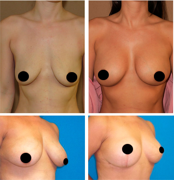Normalmente, as incisões são feitas ao redor das aréolas ou na base do sulco mamário. Em qualquer um dos casos, as cicatrizes são pouco perceptíveis, mas é claro que quanto menos incisões precisarem ser feitas, mais rápida é a recuperação.