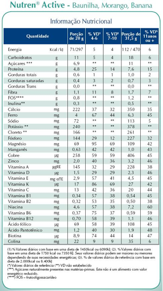 O Nutren Active é um complemento alimentar da Nestlé para quem necessita potencializar a nutrição diária ou se preocupa com uma alimentação equilibrada. É o único com PREBIO¹. Composto exclusivo da Nestlé que possui fibras tais como inulina e frutooligossacarídeos-FOS, que contribuem para o equilíbrio da flora intestinal. Possui 25 vitaminas e minerais.