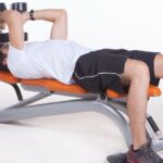 Deite-se em um banco e segure uma barra com os braços esticados na altura de seus ombros, com as palmas voltadas para fora. Dobre os cotovelos e abaixe o peso em direção à testa, parando quando estiverem a 90 graus, perto de sua cabeça. Empurre o peso de volta e repita 12 vezes.