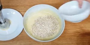 - Acrescente a aveia, o fermento, a canela, a chia e bata novamente.