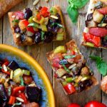 Além da berinjela, a preparação também conta com ingredientes cheios de sabor como pimentões (vermelho e amarelo), alcaparras, azeitonas, orégano, alho e cebola.