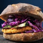 O hambúrguer vai no pão integral ao lado de folhas de alface, rodelas de tomate maduro e um molho de abacate com limão, pimenta e sal. Ficou com vontade de experimentar como o prato fica?