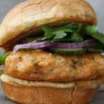Além do filé de peixe, a massa desse hambúrguer conta com iogurte natural e temperos super saborosos como salsinha, cebolinha, coentro, pimenta-do-reino, raspas e suco de limão. Tudo para ajudar o prato a ficar muito saboroso.