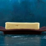 - Na hora de desenformar, passe uma faquinha nas laterais e remova o aro de montagem, pressionando a manteiga para baixo. Corte a manteiga em pedaços, embale os pedaços no papel-manteiga e armazene na geladeira.