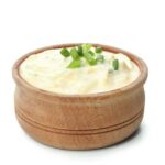 A base do molhinho é o creme de leite, no entanto, ele também conta com o sabor do alho, do limão espremido, do azeite de oliva e do cheiro-verde (salsinha e cebolinha).