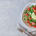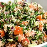 É uma salada árabe light tipo tabule! Feito à base da saudável e nutritiva quinoa, o prato também conta com tomate, cebola e pepino. Além disso, há os benefícios da salsinha, além da companhia da hortelã, do suco de limão espremido na hora e do azeite de oliva.