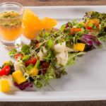 Além disso, o prato conta com vegetais como pimentão, cenoura, repolho e palmito. Há ainda uma vinagrete de maracujá para deixar a salada com um molho muito saboroso e especial.