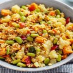 - Misture o frango, a quinoa e os legumes cozidos em uma travessa. Sirva a salada quente ou fria, como preferir.