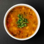 - Juntar a pimenta-do-reino, o sal, o alho, o coentro e o tomilho. Deixar cozinhar por 15 a 20 minutos, até os vegetais ficarem macios.