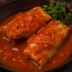 - Lave o repolho, corte ao meio, corte cada uma das metades ao meio e fatie. Corte o chuchu ao meio no sentido do comprimento e esfregue uma metade na outra para remover a baba. Lave e pique em cubinhos.