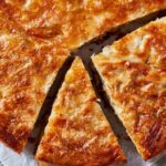 - Despejar metade da massa em uma forma untada com azeite. Distribuir as fatias de queijo, colocar o refogado de carne por cima e fechar com o restante da massa. Salpicar orégano para finalizar.