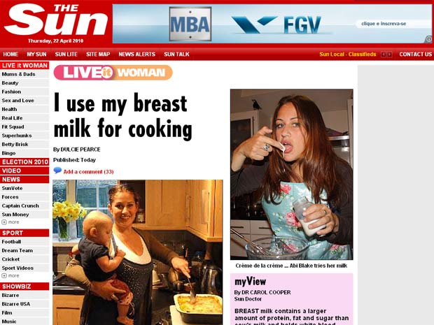 Bem, a inglesa Abi Blake resolveu inovar e usar seu leite materno para fazer diversas receitas.