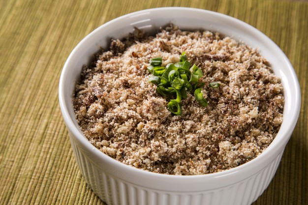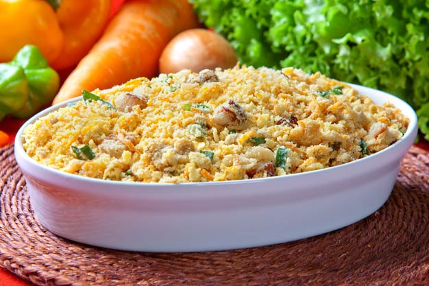 A farofa é um acompanhamento que combina com praticamente qualquer coisa. Mas nem sempre ela é preparada de uma forma saudável. Muitas vezes, são usados carnes e ingredientes como linguiça e bacon que deixam a farofa muito gordurosa.