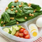 Você precisa se certificar de que sua salada tem um bom equilíbrio de carboidratos, proteínas e gordura. Sendo assim, consiga a proteína na sua salada com frango grelhado, frango, ovos cozidos, feijão ou quinoa; carboidratos de arroz, macarrão integral ou batatas; e gorduras de óleos como o azeite de oliva.