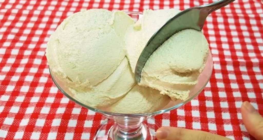 Sorvete caseiro de baunilha, sem açúcar, super cremoso, delicioso e sem leite