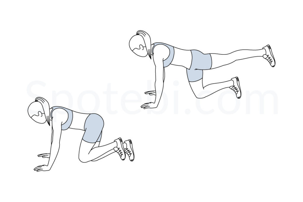 Como fazer: o primeiro passo é colocar-se na posição de quatro com os joelhos dobrados, encostados no chão e alinhados com os quadris, as mãos encostadas no chão e alinhadas com os ombros, os braços retos e os pés apoiados somente pelas pontas (dedos dos pés). É preciso certificar-se que as mãos estejam diretamente abaixo dos ombros e que os pés estejam diretamente abaixo dos quadris.