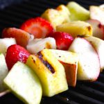 - Agora, transfira os pedaços das frutas para uma assadeira forrada com um papel manteiga.