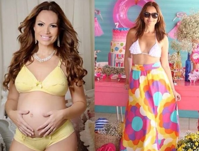 A miss Brasil 2007 teve gêmeas com o cantor Leandro, do trio KLB, em agosto de 2013, e após quatro meses já aparecia em fotos exibindo a boa forma.