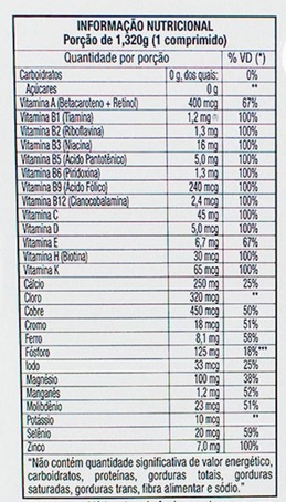 É permitido comprar o suplemento sem a apresentação de receita médica. Entretanto, antes de usar um polivitamínico e poliminerais, é aconselhável conversar com o médico para saber se o medicamento ou suplemento é realmente necessário e apropriado para o caso do paciente em questão.